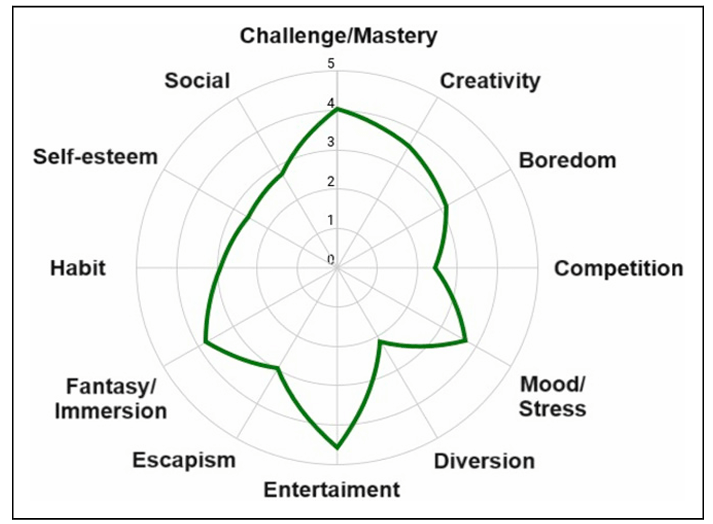 At University of Florence we worked at a huge literature review for all scales measuring motivations to play videogames. Then, we understood them in a psychological framework and built our own scale encompassing all the (survived) constructs of the other scales.