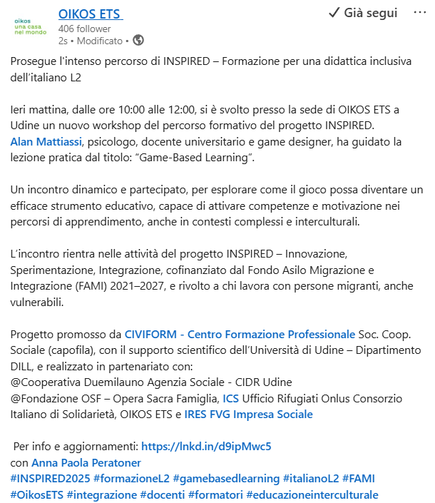 Se volete saperne di più, qui c’è il post su Linkedin di OIKOS.